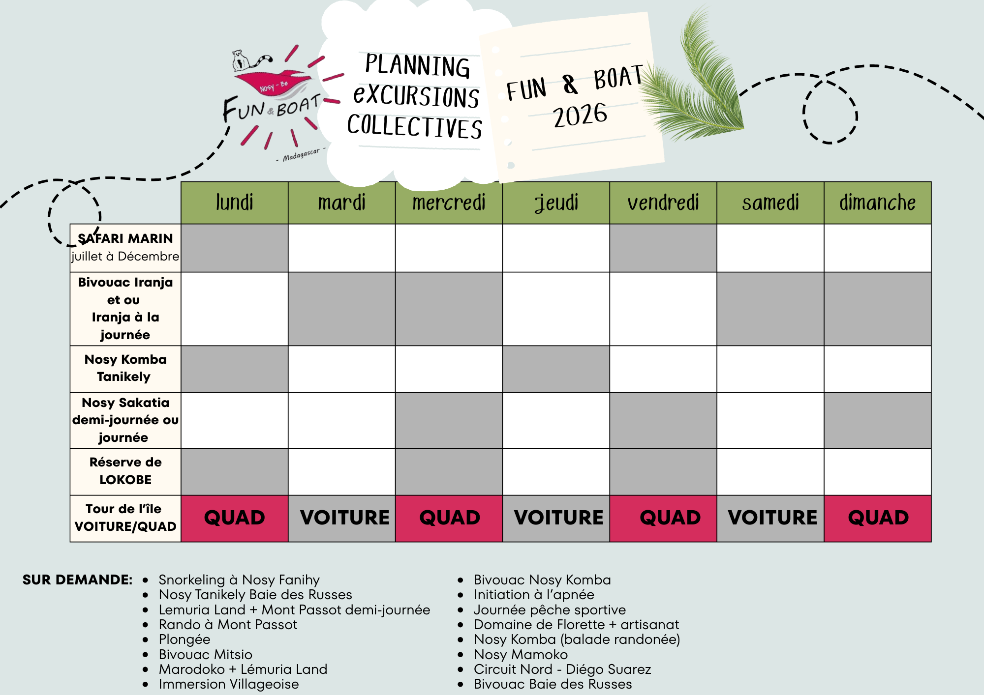 Planning départ collectif pour Nosy Be en Quad